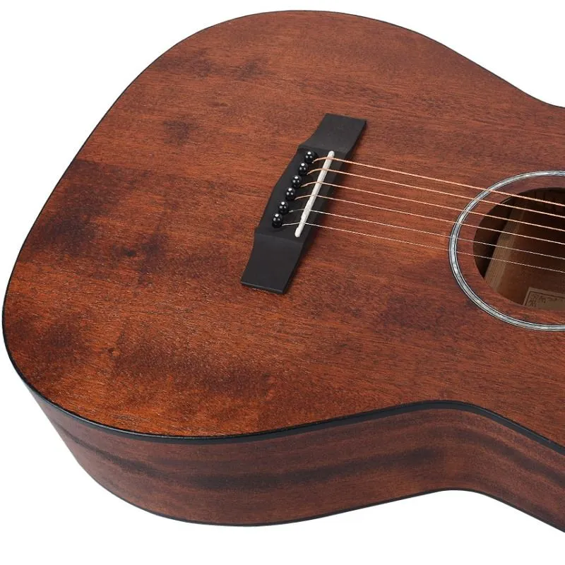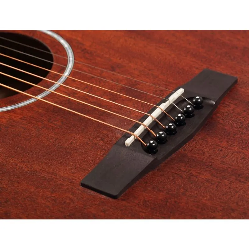 Разработанная в соответствии с последними тенденциями рынка акустических гитар, эта модель имеет не только нижнюю деку и обечайки, но также и верхнюю деку из красного дерева. Звучание красного дерева по сравнению с елью хоть и более тусклое, но и более теплое, с полной и богатой серединой.