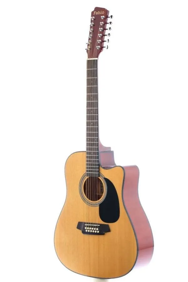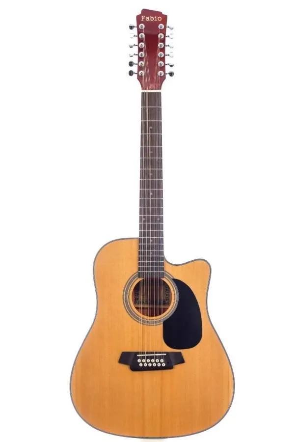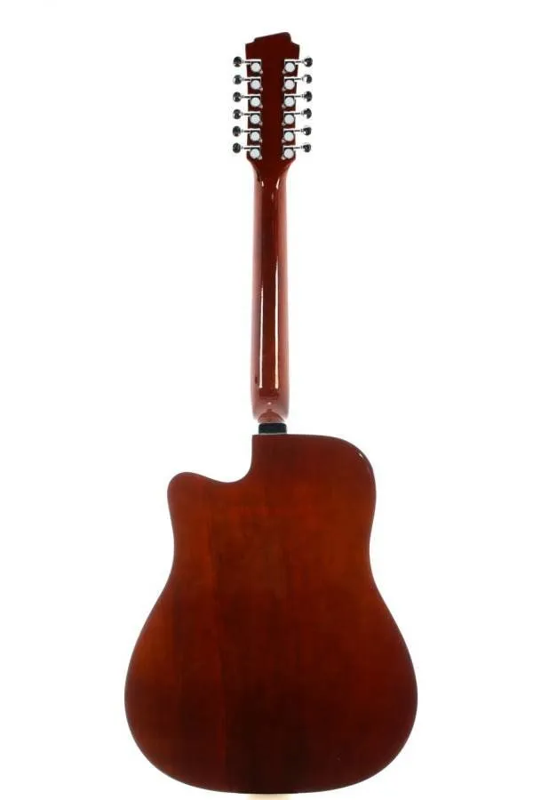 12-струнная акустическая гитара Dreadnought с вырезом (cutaway) для удобного доступа к верхним ладам - двенадцатиструнная модель, практичный высококачественный инструмент для повседневного использования, оптимальна для начинающих.