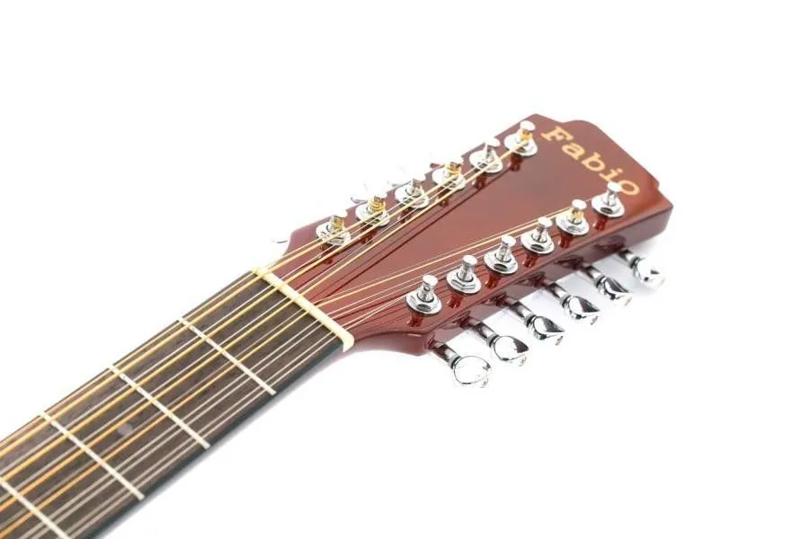 В отличии от обычной шестиструнной акустической гитары, Fabio FB12 4010 имеет 12 парных струн, причем первые две пары настраиваются в унисон, а остальные в октаву, такое сочетание позволяет даже самому обычному аккорду звучать более богато, совершенно иное звучание.